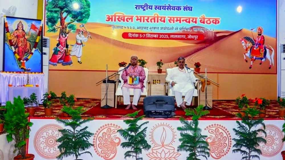 राष्ट्रीय स्वयंसेवक संघ की तीन दिवसीय अखिल भारतीय समन्वय बैठक जोधपुर में जारी है। आज बैठक के दूसरे दिन विभिन्न अहम विषयों पर चर्चा होनी है। गौरतलब है कि कल से शुरू हुई बैठक में राष्ट्रीय शिक्षा नीति 2020 के प्रभावी क्रियान्वयन, जनजातीय क्षेत्रों में सामाजिक विकास और पंच परिवर्तन पर विशेष सत्र आयोजित किए गए थे।