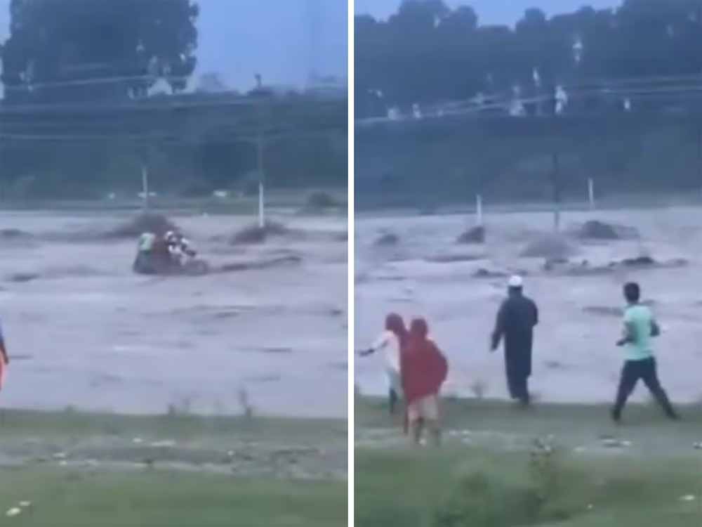 उत्तराखंड की राजधानी देहरादून में बादल फटने से भारी तबाही मची हुई है। सोमवार देर रात हुई भारी बारिश के बाग कई सड़कें टूट गईं। होटल-दुकानें बह गए जबकि कई लोग लापता बताए जा रहे हैं। इस जल सैलाब के कई खौफनाक वीडियो भी सामने आ रहे है। ऐसा ही एक वीडियो सोशल मीडिया पर काफी वायरल हो रहा है जिसमें मदद की गुहार लगाते नदीं के बीचों बीच ट्रैक्टर पर फंसे कुछ लोग देखते ही देखते नदी के तेज बहाव में बह गए और लोगों में चीख पुकार मच गई। रिपोर्ट्स के मुताबिक इस घटना में कम से कम 6 लोगों की मौत की आशंका है। यह वीडियो विकासनगर में उफनती टोंस नदी का बताया जा रहा है।