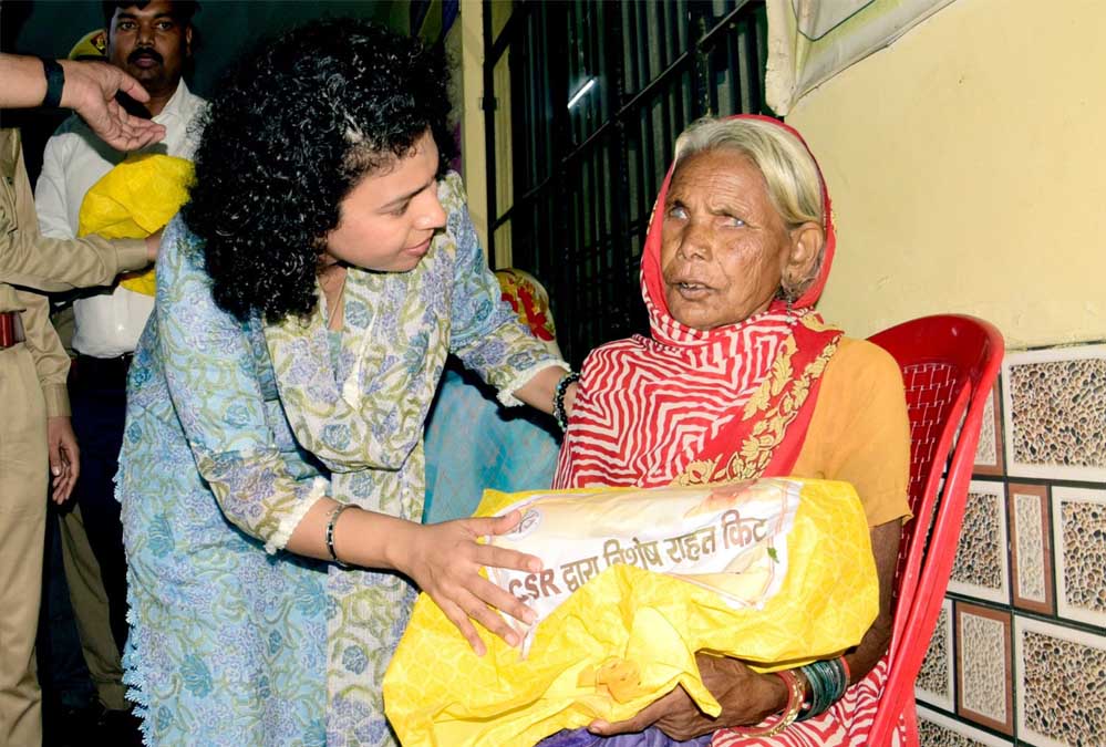 जिलाधिकारी लखीमपुर खीरी दुर्गा शक्ति नागपाल ने बताया कि मुख्यमंत्री योगी आदित्यनाथ हमेशा अापदा के समय प्रदेशवासियों के साथ खड़े रहते हैं। उनके द्वारा न केवल आपदा की घड़ी में पीड़ितों को हर संभव मदद उपलब्ध करायी जाती है बल्कि वह खुद पीड़ितों पर दर्द साझा करने के लिए उनसे मुलाकात कर कुशलक्षेम पूछते रहते हैं। इसी क्रम में सीएम योगी की दूरदर्शी सोच को आत्मसात करते हुए सरकारी सहायता के साथ बाढ़ प्रभावित इलाकों में 5 हजार सीएसआर स्पेशल किट का वितरण किया जा रहा है। उन्होंने बताया कि किट को जरूरतमंदों तक पहुंचाने के लिए जिले की पांच बाढ़ प्रभावित तहसीलों के सभी बाढ़ प्रभावित गांव में निराश्रित महिलाओं, दिव्यांगों और 70 वर्ष से ऊपर के वृद्धजनों को चिन्हित किया गया है। इसके साथ ही हर जरूरतमंद को स्पेशल किट का वितरण किया जा रहा है। जिलाधिकारी दुर्गा शक्ति नागपाल ने गुरुवार को सदर तहसील में विधायक योगेश वर्मा के साथ जरूरतमंदों को सीएसआर स्पेशल किट वितरित की।