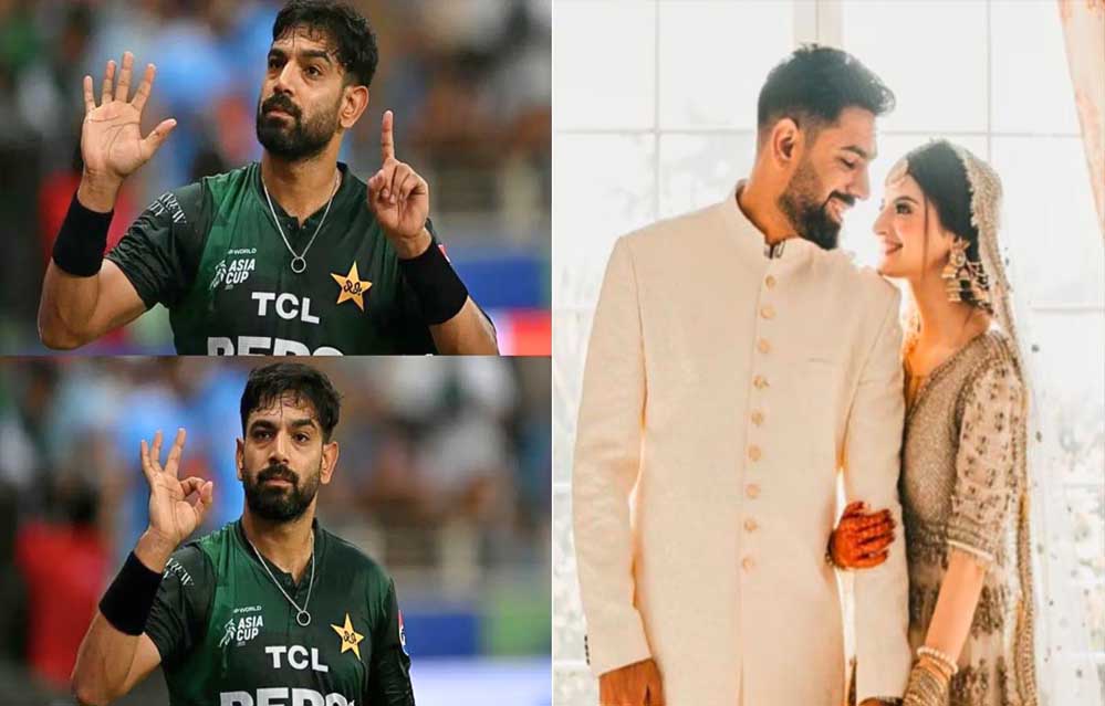 भारत और पाकिस्तान के बीच एशिया कप सुपर-4 में खेले गए मुकाबले में खूब ड्रामा देखने को मिला. इस मैच में पाकिस्तानी खिलाड़ी पूरी तरह से बौखलाए नजर आए. हारिस रऊफ मैच से पहले प्रैक्टिस सेशन में भी कई बार '6-0' चिल्लाते नजर आए. वहीं मैच के दौरान भी इस खिलाड़ी ने हाथ से 6-0 का साइन बनाया. लेकिन संयोग तो देखिए कि पाकिस्तान को भारत ने 6 विकेट से ही मात दी. लेकिन भारत से दूसरी बार हारने के बाद भी पाकिस्तानी खिलाड़ी सुधरे नहीं हैं. वहीं हारिस रऊफ की पत्नी मुजना मसूद मलिक ने भी सोशल मीडिया पर एक भद्दा पोस्ट किया है, जिसका सच से कोई लेना-देना नहीं है.