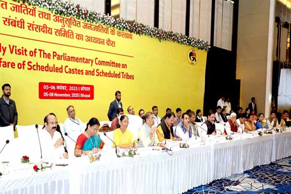 अनुसूचित जाति एवं जनजाति कल्याण संबंधी योजनाओं के लिए मध्यप्रदेश के अध्ययन दौरे पर आई संसदीय समिति ने गुरूवार को भोपाल में इन वर्गों के कल्याण की योजनाओं एवं उनकी वर्तमान सामाजिक आर्थिक स्थिति की समीक्षा की। बैठक की अध्यक्षता सांसद श्री फग्गन सिंह कुलस्ते ने की। संसदीय समिति ने जनजातीय क्षेत्र में साक्षरता दर बढ़ाने, जनजातीय एवं अनुसूचित वर्गों के विद्यार्थियों को कौशल संपन्न बनाने और मैदानी स्तर पर उनकी कल्याणकारी योजनाओं के प्रभावी क्रियान्वयन करने की अपेक्षा की।