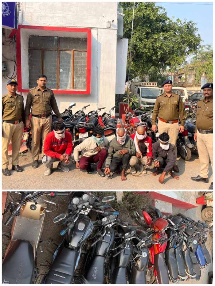 रीवा- जिले की कोतवाली पुलिस ने मोटर साइकल चोरी में लिप्त एक सक्रिय गिरोह का पर्दाफाश किया है। कार्रवाई के दौरान 05 आरोपियों को गिरफ्तार कर उनके कब्जे से चोरी की 12 मोटर साइकलें बरामद की गईं, जिनकी कीमत लगभग 8 लाख रुपये है। पूछताछ में आरोपियों द्वारा रीवा सहित अन्य जिलों में भी चोरी की वारदातें करना स्वीकार किया है।