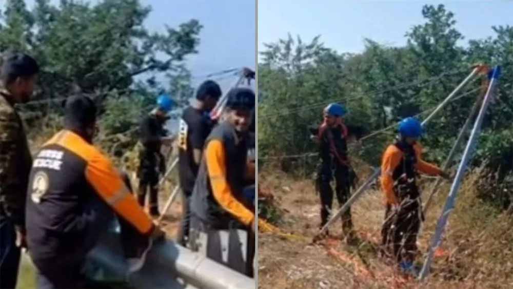 तलाशी के दौरान सड़क के एक मोड़ पर टूटी सुरक्षा रेलिंग दिखाई दी, जिससे आशंका हुई कि वाहन खाई में गिरा हो सकता है। इसके बाद पुलिस ने ड्रोन की सहायता ली और SUV घाटी में नीचे एक पेड़ में अटकी हुई मिली।