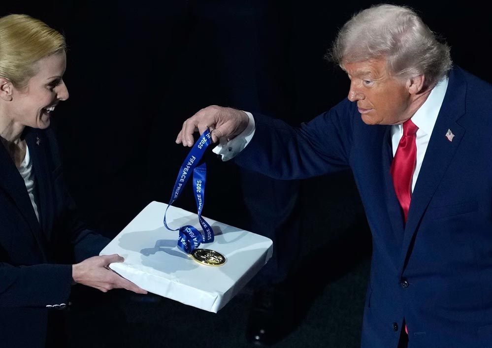नोबेल शांति पुरस्कार की मांग कर रहे डोनाल्ड ट्रंप को नोबेल तो नहीं लेकिन फीफा शांति पुरस्कार जरूर मिल गया है। फुटबॉल की वैश्विक संस्था (FIFA) अमेरिका के राष्ट्रपति डोनाल्ड ट्रंप को अपने नए फीफा शांति पुरस्कार से सम्मानित किया है। यह पुरस्कार खेल से इतर वैश्विक शांति को ध्यान में रखकर बनाया गया है और ट्रंप इसके पहले विजेता हैं।