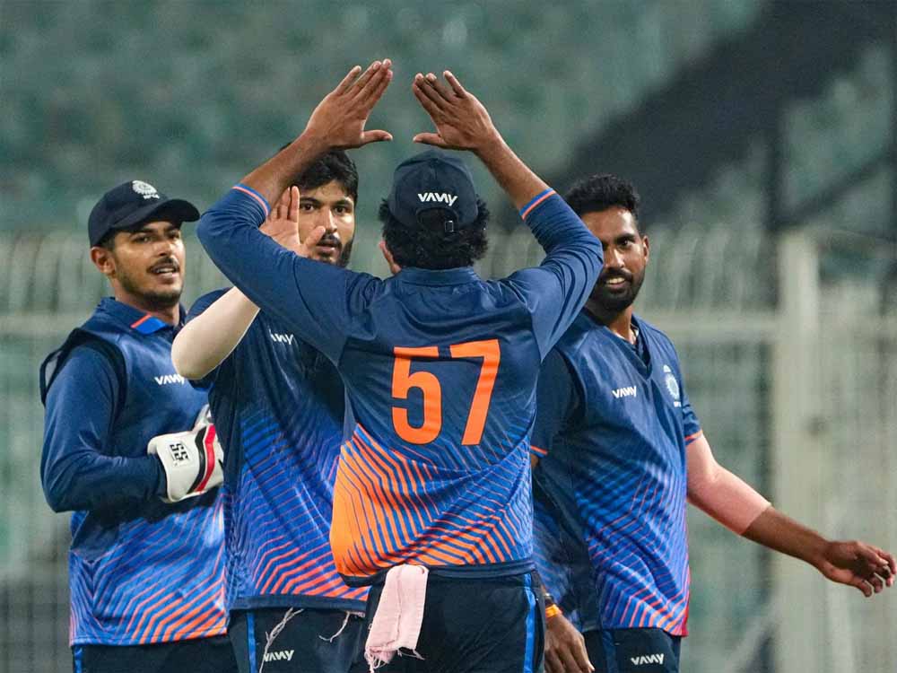 उन्होंने अपनी पहली ही गेंद पर एक विकेट लिया और चंडीगढ़ के टॉप और मिडिल-ऑर्डर को तहस-नहस कर दिया। मनन वोहरा चंडीगढ़ के अकेले बैटर थे जिन्होंने 52(43) रन बनाकर कोई रुकावट नहीं डाली, क्योंकि टीम सिर्फ 134/8 रन ही बना सकी। जवाब में, हर्ष गवली (74*) और हरप्रीत सिंह भाटिया (48) ने 95 रन की पार्टनरशिप करके आसान जीत पक्की कर दी।