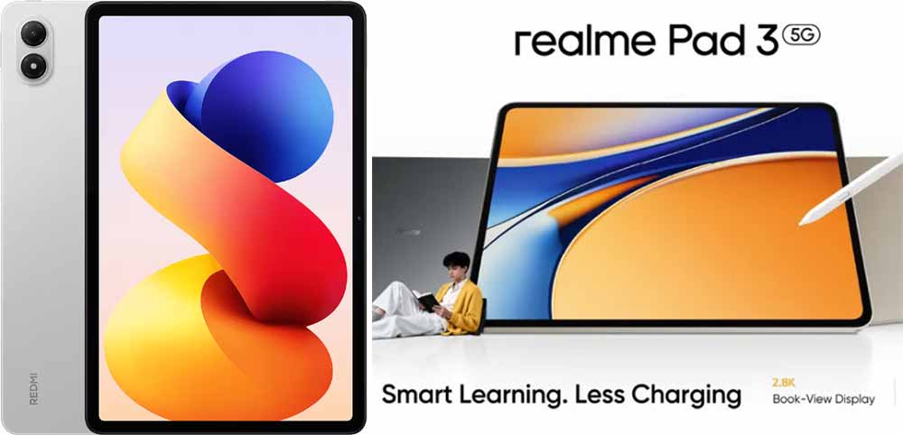 भारत में पहली बार 12 हजार एमएएच बैटरी वाले 2 टैबलेट लॉन्च हुए हैं। खास बात है कि रियलमी और रेडमी ने इन टैबलेट को लॉन्च किया है। दोनों कंपनियां एक दूसरे की प्रतिद्वंदी हैं और इन्होंने एक ही दिन अपने प्रोडक्ट पेश किए हैं। realme Pad3 में 12200mAh बैटरी है, जबकि Redmi Pad 2 Pro में 12000mAh बैटरी दी गई है। रियलमी ने अपने टैब में मीडियाटेक का चिपसेट लगाया है और रेडमी पैड में स्नैपड्रैगन प्रोसेसर मिलता है। इनकी कीमतें भी आसपास हैं। आइए दोनों टैबलेट के दाम और इनके फीचर्स को जानते हैं।