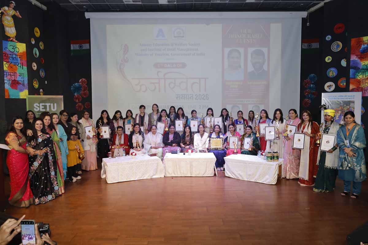अनुनय एजुकेशन एंड वेलफेयर सोसाइटी के तत्वावधान में भारतीय होटल प्रबंधन संस्थान भोपाल में बुधवार को 25 महिला विभूतियों को ऊर्जस्विता सम्मान से सम्मानित किया गया। कार्यक्रम की अध्यक्षता महिला एवं बाल विकास विभाग की मंत्री निर्मला भूरिया ने की और मुख्य अतिथि की भूमिका पशुपालन राज्यमंत्री (स्वतंत्र प्रभार) लखन पटेल ने निभाई। महापौर मालती राय और भाजपा महिला मोर्चा की प्रदेश अध्यक्ष अश्विनी परांजपे विशेष अतिथि के तौर पर मौजूद थे। इस अवसर पर कई जिलों में कलेक्टर की भूमिका निभाने वाली जयश्री कियावत को लाइफटाइम अचीवमेंट पुरस्कार से सम्मानित किया गया।